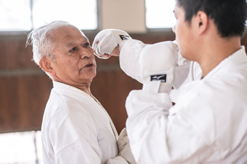 実践を意識しながらも、練習では相手に怪我をさせないという規則を設け、安心して練習できる環境です。