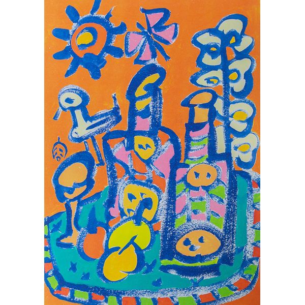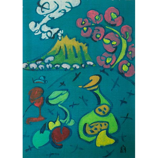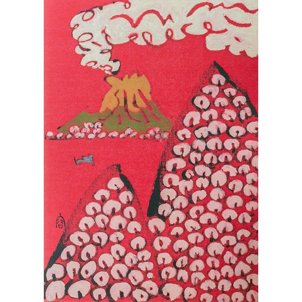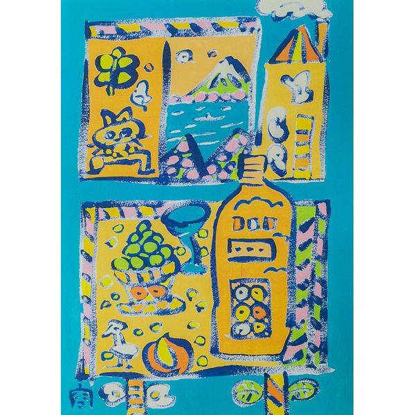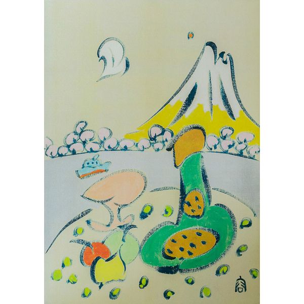 - 春、ワイン、グラス、フルーツ、海の彼方に煙吐く山